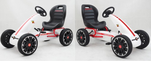 Gokart na pedały z piankowymi kołami EVA i hamulcem ręcznym. Przeznaczony dla dzieci 3-8 lat