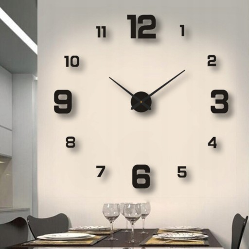 DUŻY NOWOCZESNY ZEGAR NAKLEJANY NA ŚCIANĘ 3D