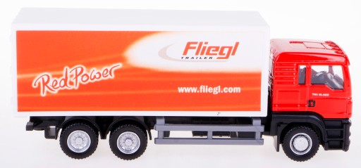 Model wykonany jest z metalu (kabina) oraz z elementów plastikowych (naczepa, podwozie).