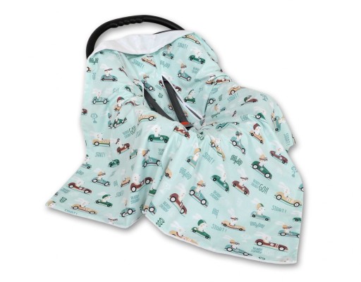Wyjątkowo miękki, ciepły, dwustronny otulacz kocyk do fotelika- nosidełka zapewniający pełen komfort dziecku w trakcie jazdy samochodem. Wykonany z mięciutkiego materiału minky i kolorowej 100% bawełny.