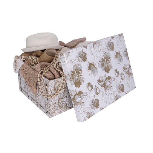 Wykonane z wysokiej jakości, wytrzymałego, kaszerowanego kartonu z połyskiem, w 100% pochodzącego z recyklingu . Sposób wykończenia kartonu pozwala na czyszczenie wilgotną ściereczką. Ścianki pudełka spięte plastikowymi nitami. Podwójny karton na ściankach z uchwytami do przenoszenia. Intuicyjny i prosty montaż. W ieko nie wymaga dodatkowego składania. Dekoracyjne pudełko z możliwością stawiania jedno na drugim, równie praktyczne w szafie, jak samodzielnie na półce lub na podłodze Pudełko w całości wykonane we Włoszech.