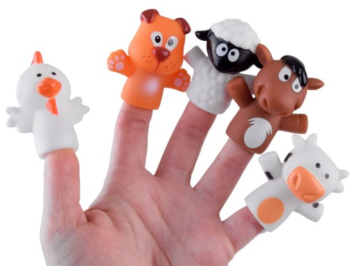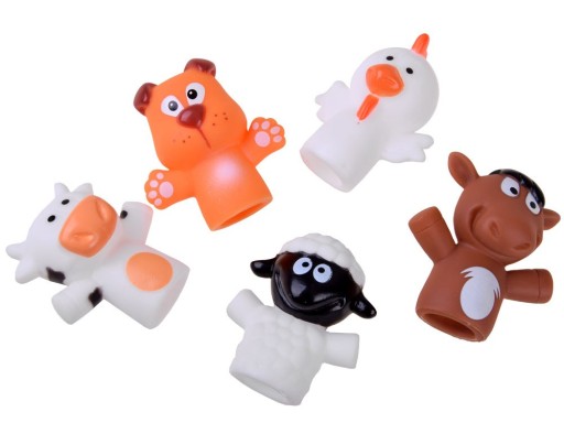 Kolorowe, gumowe pacynki z postaciami zwierzątek z farmy, pozwolą na wyśmienitą zabawę. Pięć gumowych zwierzaków owieczka, konik, krówka, piesek, kogut to niezła brygada do stworzenia niesamowitej historii o przygodach pięciu przyjaciół. Bawiąc się takimi pacynkami dziecko wraz np. z rodzicem może wymyślać przeróżne opowieści, historie, bajki. Zabawa pacynkami pobudzi wyobraźnie, zapewni mnóstwo pozytywnych emocji.
