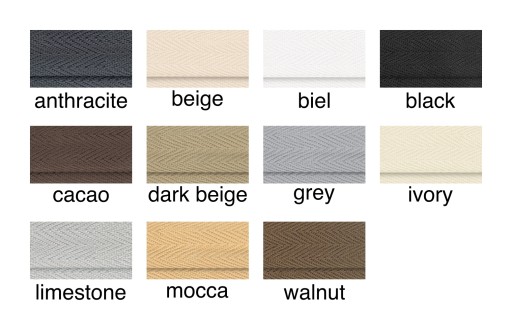 najczęściej drabinki dobierane są pod kolor drewna ale na życzenie można zrobić drabinki kontrastowe - np. biała żaluzja z czarnymi tasiemkami.