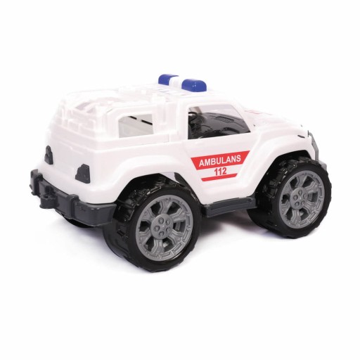 Pojazd posiada masywną, terenową konstrukcję, duże koła odznaczają się z daleka i dają wrażenie potęgi auta. Po boku znajdują się czerwone naklejki z napisem Ambulance, które dodają charakteru. Wewnątrz kabina kierowcy oraz tył auta wykonany z najmniejszym szczegółem, co przypomina realistyczny odpowiednik. Zabawka jest super gadżetem dla każdego małego miłośnika motoryzacji, ale i zawodu ratownika medycznego poszerzy kolekcję jego pojazdów, przynosząc mu ogrom radości z zabawy.