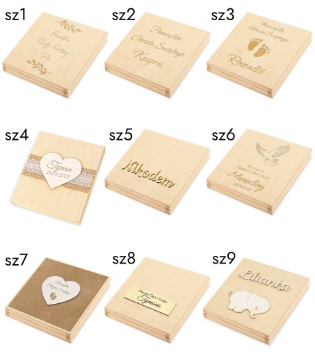 - grawerowane pudełko drewniane,