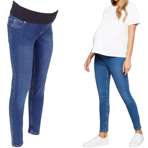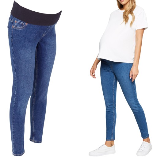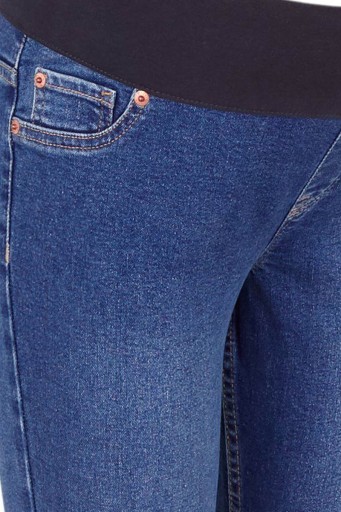 Nowe Ciążowe spodnie/jeansy marki New Look w odcieniu granatowym. Długość short. Model ,,Emilee Under Bump Jegging". Jeansy z elastycznym czarnym panelem. Panel wewnątrz ma wszytą gumę, dostosowującą się do zmieniającego się ciała przyszłej mamy. Z przodu dwie imitacje kieszenie oraz zamka. Jedna mała kieszeń z przodu oraz dwie kieszenie z tyłu. Jeansy uszyte z miłego w dotyku i wysokogatunkowego materiału.