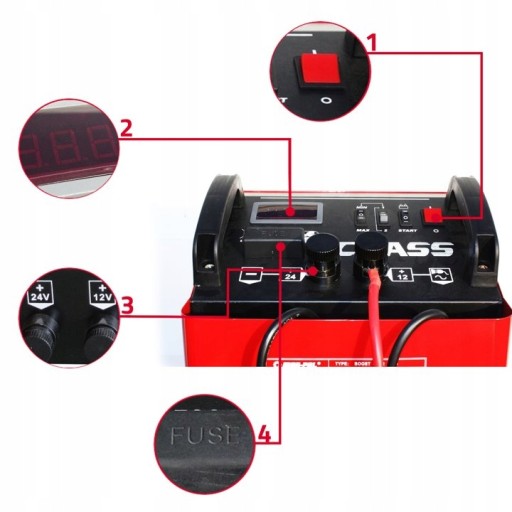 Prostownik CLASS 430 z funkcją rozruchu to narzędzie do ładowania i wspomagania rozruchu akumulatorów ołowiowo-kwasowych o napięciu 12 V, 24 V i pojemności akumulatorów od 40 Ah do 400 Ah.