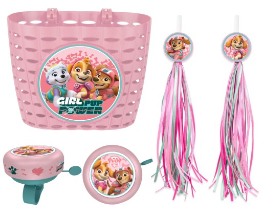 KOSZYK DZWONEK WSTĄŻKI NA ROWER PSI PATROL GIRLS