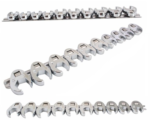 Zestaw kluczy otwartych na listwie