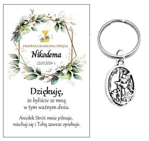 PAMIĄTKA UPOMINEK PREZENT PODARUNEK DLA GOŚCI Z OKAZJI KOMUNII ŚWIĘTEJ - KARTECZKA Z PODZIĘKOWANIEM I BRELOCZKIEM W KSZTAŁCIE ANIOŁKA.
