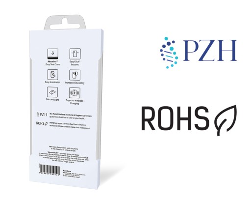 Zabezpieczając telefony, mamy na uwadze troskę o planetę. Matt Case przeszedł pozytywnie certyfikację RoHS w niezależnym laboratorium – oznacza to, że jest przyjazny środowisku i mieści się w ścisłych unijnych dyrektywach dotyczących zawartości metali ciężkich i niebezpiecznych substancji (m.in. ołowiu, rtęci czy kadmu).
