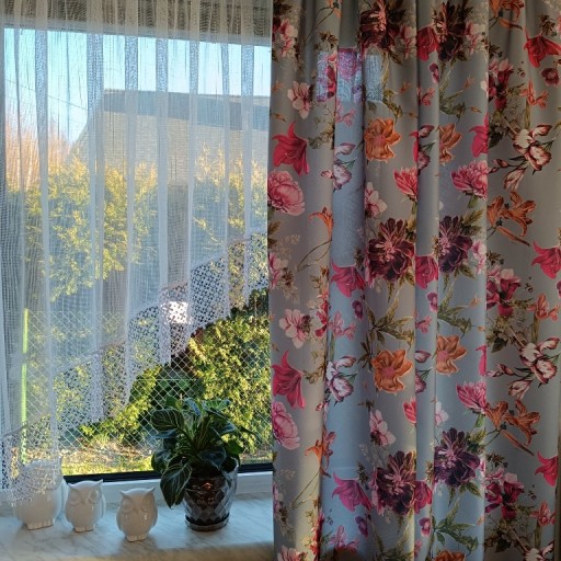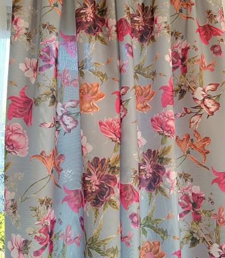 Wysokość dobiera się według własnych potrzeb. Przy zakupie należy uwzględnić zapas tkaniny jaki będzie potrzebny na podwinięcie krawędzi. Boki tkaniny fabryczne – wymagają obszycia.