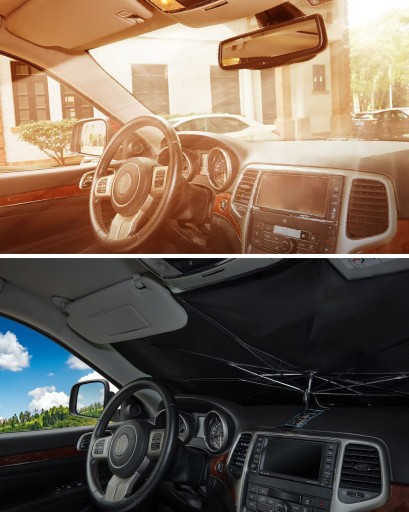 Mata składa się z 10 stalowych żeber, które składają i rozkładają się jak parasol. Złożona nie zajmuje dużo miejsca w samochodzie. Rozłożona uchroni Twoje auto przed nadmiernym nagrzewaniem się w środku oraz ochroni deskę rozdzielczą i kokpit przed działaniem słońca.