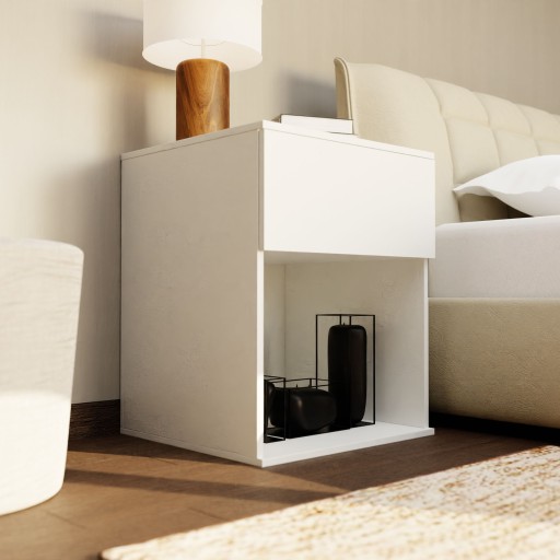 SZAFKA NOCNA STOLIK NOCNY BIAŁY SZUFLADA PÓŁKA LOFT SYPIALNIA