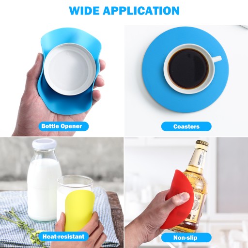 ✅Produkty to antypoślizgowe podkładki silikonowe, które są bezpieczne i odporne na wysokie temperatury, antypoślizgowe i łatwe do czyszczenia. I może być używany jako praktyczne podkładki pod kubki na wodę i otwarte podkładki pod butelki. Dobre narzędzie do domu i kuchni, kompaktowe i praktyczne, pomagające otwierać szczelne pokrywki butelek.