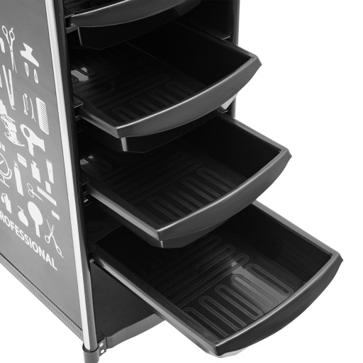 wysokiej jakości wózek do twojego salonu fryzjerskiego, kosmetycznego lub spa? Dziesięć wózków do salonu składa się z 4 łatwych do wyciągnięcia szuflad i 2 stojaków na tace, w których można umieścić wszystkie potrzebne narzędzia, składany blat zapewnia dodatkową przestrzeń roboczą i poprawia porządek w przestrzeni. Produkcja jest wysokiej jakości materiałem PP z sitodruku, aby sprawdzić sprawdzanie. Uniwersalne przemieszczanie się z większą łatwością. Zaoszczędź miejsce dzięki dodatkowemu wózkowi.