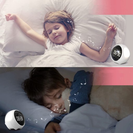 - Ten budzik dla dzieci może być używany jako budzik, lampka nocna, zegar do sypialni, oświetlenie pokoju, a także stanowi świetny prezent na urodziny, święta, prysznice dla dzieci, Boże Narodzenie i nie tylko. Możesz nie tylko nauczyć dziecko zasypiania lub budzenia się, ale także pomóc mu wyrobić dobre nawyki.