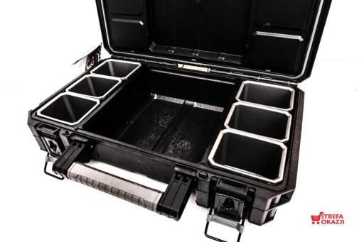 Profesjonalny organizer do przechowywania małych części i akcesoriów, wyposażony w funkcjonalne pojemniki ułatwiające przechowywanie. Posiada także specjalne zatrzaski oraz boczny uchwyt - te elementy zostały wykonane z wytrzymałego metalu. Organizer dostępny jako niezależny element lub w komplecie z dwoma pozostałymi skrzynkami do narzędzi. Każda z nich wykonana jest z wysokiej jakości plastiku oraz odpowiednio uszczelniona, co gwarantuje dłuższą żywotność sprzętu. Dzięki tym cechom praca będzie bezpieczna i komfortowa.