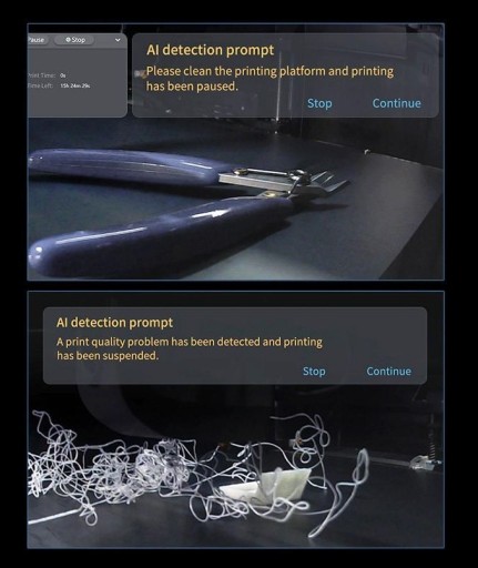 - wykrywa błąd drukowania i przerywa proces, co pozwala na oszczędzenie filamentu