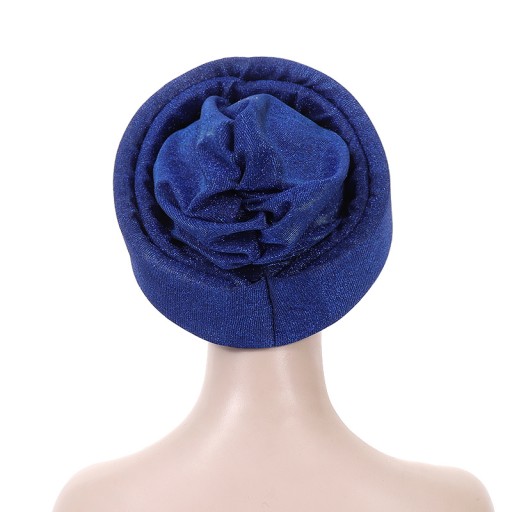 Капюшон из губчатой ткани со сложенными краями, блестящая плиссированная кепка-тюрбан, темно-синий