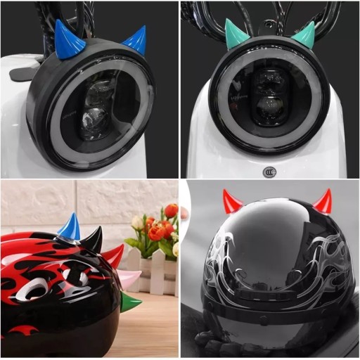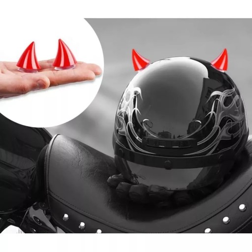 Plastikowe ozdobne rogi do kasku. Mocowane do kasku za pomocą przyssawki (w zestawie). Są wykonane z tworzywa sztucznego i mają kształt rogów. Główna funkcja to ozdoba kasku.