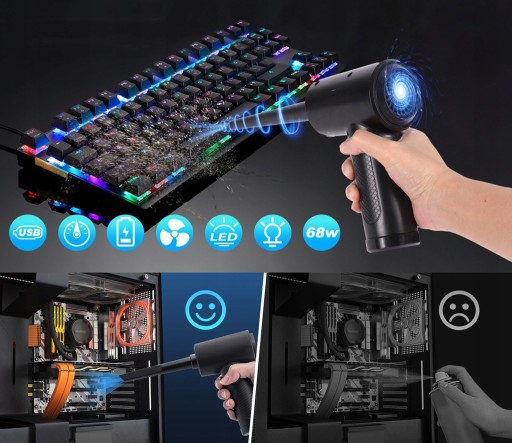 🌟【MOCNA ODKURZACZ KOMPUTEROWY DMUCHAWA AIR DUSTER 3W1 68W 6000mAh ZESTAW】🌟