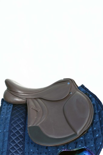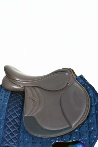 SIODŁO SKOKOWE ROZ. 17,5 CALI .SIODŁO WYKONANE W ZAKŁADZIE RYMARSKIM WE FRANCJI . WYKONANE NAJLEPSZEGO GATUNKU SELEKCJONOWANEJ SKÓRY LICOWEJ BARDZO MIĘKKIE..JEDYNY TAKI MODEL NA RYNKU W TAK NISKIEJ CENIE. KOLOR BRĄZ