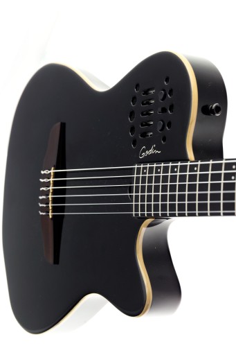 Jest to absolutnie wzorcowy model Godina z 22 progowym cienkim gryfem podobnym do tych które są montowane w gitarach elektrycznych