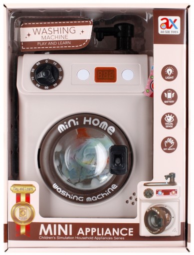 Zalety produktu: pralka posiada efekty dźwiękowe oraz świetlne, bęben pralki po włączeniu obraca się, posiada funkcje prania, podczas prania na elektronicznym wyświetlaczu odmierzany jest czas, po skończonym praniu można je wyciągnąć ze środka, pralka dodatkowo posiada umywalkę z kranem. Najwyższy czas aby zrobić pranie. Pozwól dziecku na wykonanie tej czynności domowej własnoręcznie we własnej pralce MEGA CREATIVE. Produkt ten idealnie odzwierciedla prawdziwy sprzęt domowy .