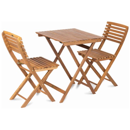 Choćby nazwa na to wskazywała to zestaw drewnianych mebli ogrodowych nie służy tylko do użytkowania na zewnątrz. Sprawdzi się podczas sezonu letniego oraz zimowego. Krzesła oraz stół mogą być wykorzystywane w pomieszczeniach np. w małym domku letniskowym. Bez problemu znajdziesz miejsce i je ulokujesz, nie posiadają wielkich gabarytów oraz dużej wagi.