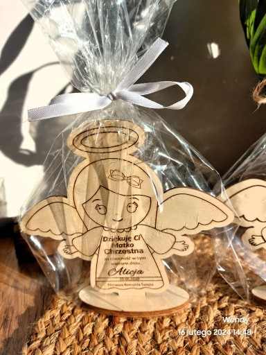 Witam na naszej aukcji:) mamy do zaoferowania małe podziękowania dla rodziców chrzestnych, jak i dla gości, za przybycie na tą wyjątkową uroczystość. Aniołek stróż może stać jako pamiątka na komodzie czy półce przypominając o tym pamiętnym dniu. Opakowanie w cenie, możliwość wyboru koloru wstążeczki, jak i personalizacji oraz realizacji własnych pomysłów. W razie pytań zachęcamy do opcji: zadaj pytanie sprzedającemu:)