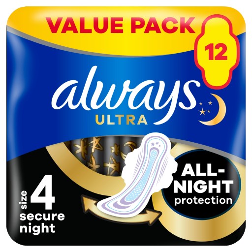 ALWAYS Ultra Secure Night Podpaski ze skrzydełkami 12 szt