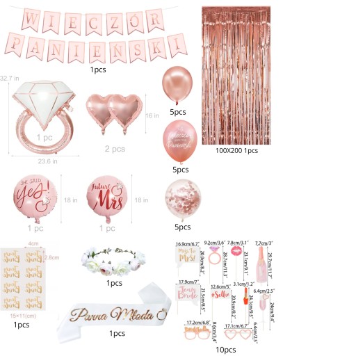 Zestaw na Wieczór Panieński zawierający balony, banner Wieczór Panieński, białą szarfę, wianek, tatuaże, gadżety do zdjęć jest idealnym dodatkiem do organizacji niezapomnianego i wyjątkowego przyjęcia. Balony mogą być przyczepione do ścian lub unosić się po napompowaniu helem. Szarfa i wianek wyróżnią Pannę Młodą z całego grona uczestniczek wieczoru. Tatuaże wyróżnią z tłumu oraz będą widoczne na zdjęciach !