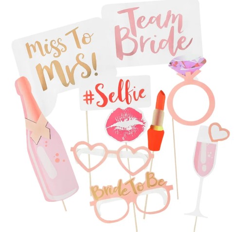 Zestaw 10 szt gadżetów do fotobudki z pewnością dostarczą uczestniczkom wieczoru mnóstwo zabawy oraz zapewnią niecodzienne, oryginalne zdjęcia, które będą pamiątką na lata.