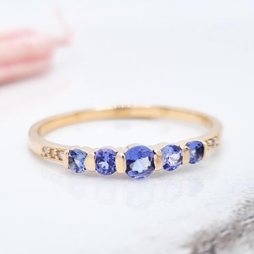 - Rodzaj produktu: Złoty pierścionek z tanzanitami i diamentami