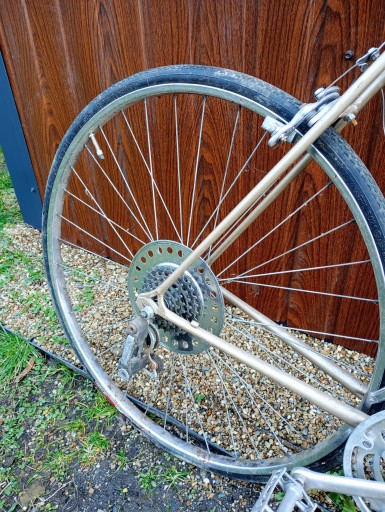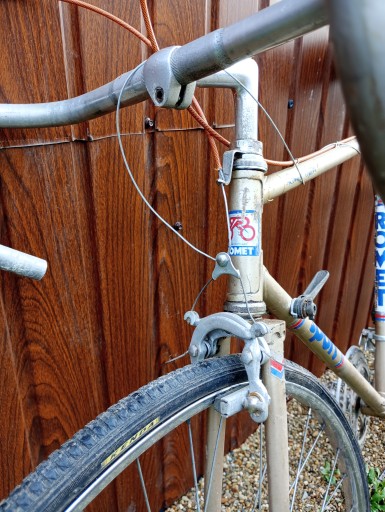 Rower romet sport ,oryginalny lakier i naklejki ,rower po przeglądzie ale nie dokończony zrobione.wycentrowane koła ,nowe dętki sprawdzone i nasmarowane łożyska,do zrobienia . łańcuch ,podpięcie iwyregulowanie linek hamulca i przeżutek ,owijka na kierownice .rocznik 81 lub 87 słabo wybite