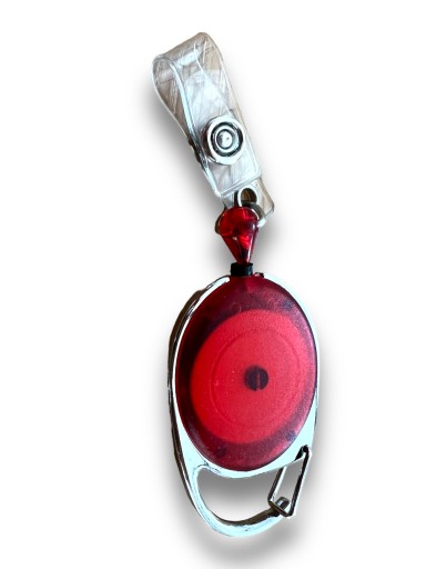 Jest idealny do przyczepienia identyfikatora lub kart skipass na nartach czy w siłowni. Za pomocą karabińczyka można przypiąć niezbędne przedmioty do plecaka, torebki czy szlufki w spodniach co uniemożliwia zgubienie. Wykonany z trwałych materiałów.