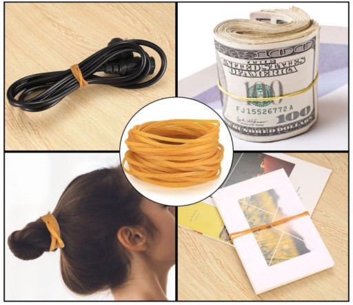 Klasyczne, uniwersalne gumki recepturki stosowane do pakowania, zamykania, wiązania, do użycia w przemyśle spożywczym, rolnictwie, biurach, ogrodnictwie, handlu i usługach oraz wielu innych zastosowań.