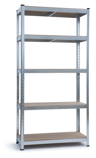 Metalowy regał do przechowywania różnego typu rzeczy. Półki z płyty wytrzymują do 100 kg równomiernie rozłożonego obciążenia, dzięki czemu regał sprawdzi się w piwnicy jako miejsce przechowywania np. słoików z przetworami,