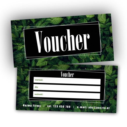 - projekt można dowolnie zmodyfikować - twoje logo, teksty, wartość vouchera, itp.