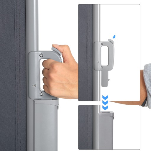 Markiza boczna przeciwsłoneczna w kolorze ciemnoszarym z regulowaną długością do 4 metrów.
