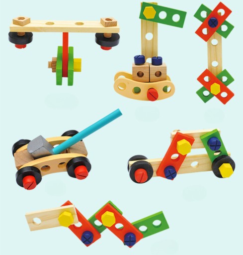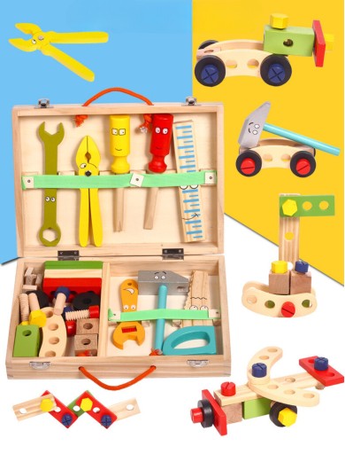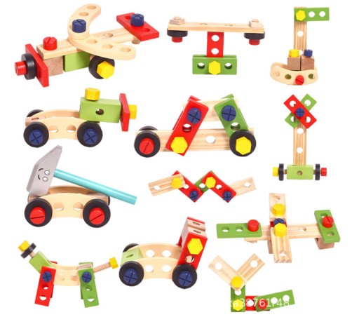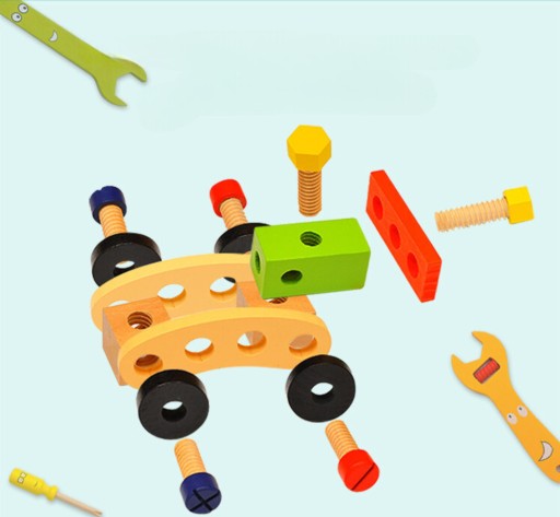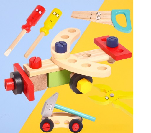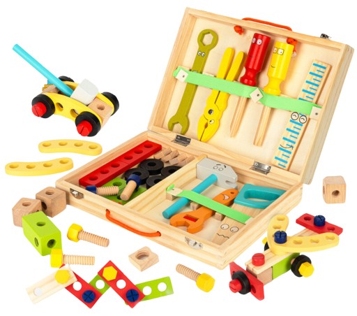Wspaniały, różnorodny zestaw drewnianych narzędzi do majsterkowania. Estetycznie wykonane, kolorowe, drewniane elementy przyciągają uwagę dzieci. Idealny sposób na rozwijanie przez najmłodszych umiejętności motorycznych i kreatywnego myślenia.