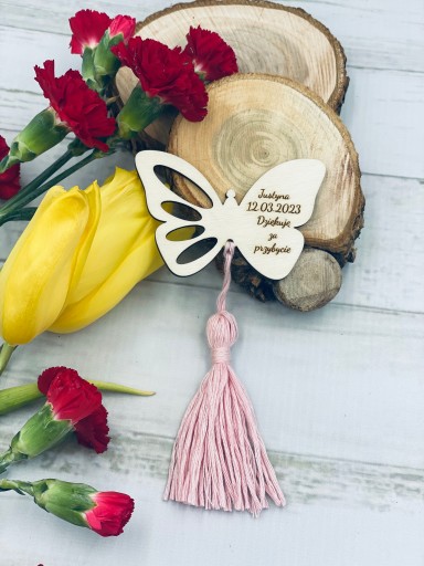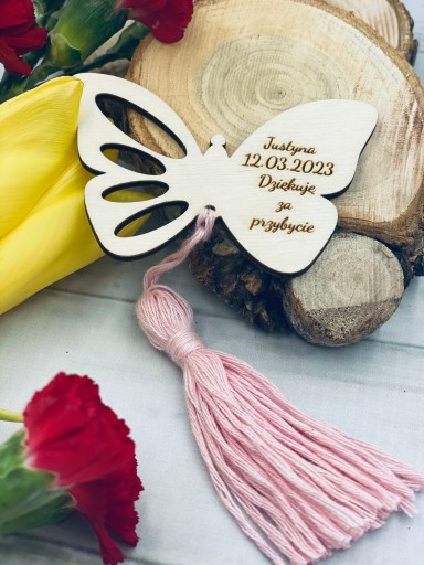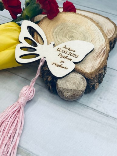 Podziękowanie dla Gości / Rodziców Chrzestnych wykonane ze sklejki 3mm z magnesem na odwrocie.