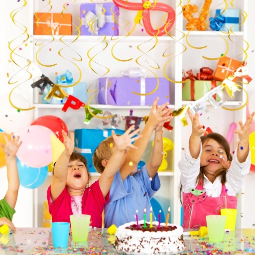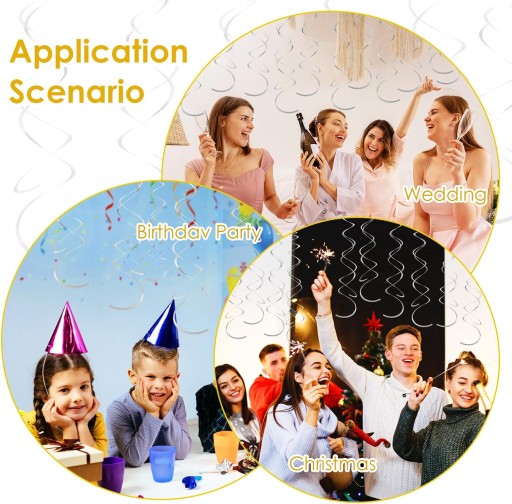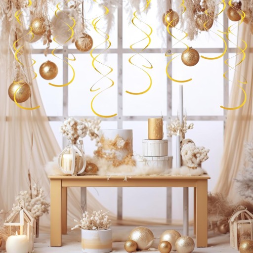 【Stwórz atmosferę】 Błyszczące dekoracje wiszące na suficie urodzinowym mają jasny kolor, dzięki czemu mogą łapać światło i z łatwością stworzyć radosną atmosferę na przyjęciu. Umieść te brokatowe wiszące złote ozdoby świąteczne na suficie i natychmiast przekształć swój dom lub biuro w eleganckie i błyszczące miejsce na imprezę. Złote spiralne dekoracje świąteczne wraz z balonami, diodami LED, banerami, pomponami, wirami i innymi dekoracjami będziesz zaskoczony i dumny z atmosfery i widoku, który tworzysz.