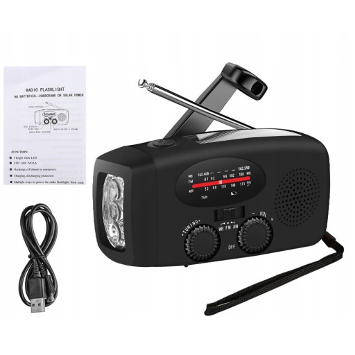 ✅Wielofunkcyjność: To solarne radio na korbkę może być używane nie tylko jako awaryjna latarka LED, ale także jako ładowarka do telefonu komórkowego.