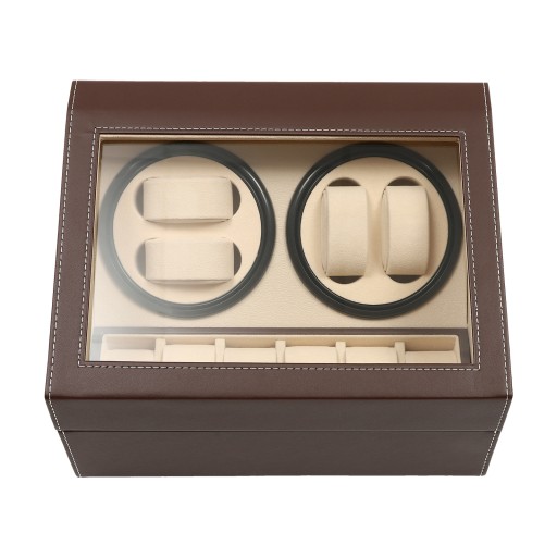 Do pudełka na zegarki 4+6 może być do 10 zegarków, z których 4 można obracać. Zegar w formacie można zobaczyć przez szklane okienko.