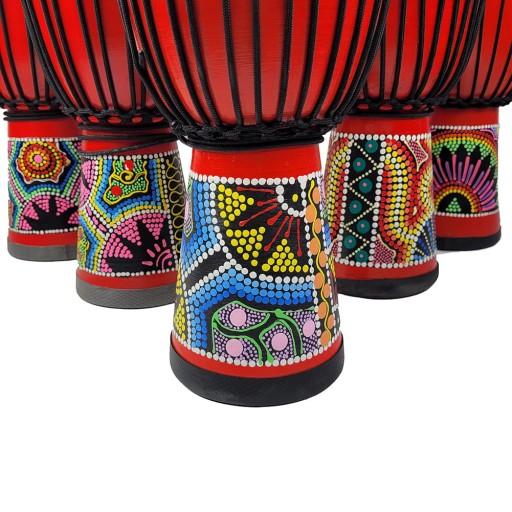 Djembe firmy GRV to nie tylko instrument, ale też artystyczne arcydzieło. Każdy egzemplarz jest indywidualnie rzeźbiony, co nadaje mu wyjątkową osobowość i charakter. Mahoń użyty w tym Djembe nie tylko zapewnia trwałość, ale także daje wyjątkowo niskie brzmienie. Naturalna skóra owcza na naciągu zapewnia czułość na każdy akcent. Warto zaznaczyć, że z uwagi na ręczne wykonanie, detale wykończenia mogą nieco się różnić, co czyni każde djembe unikatowym i niepowtarzalnym.