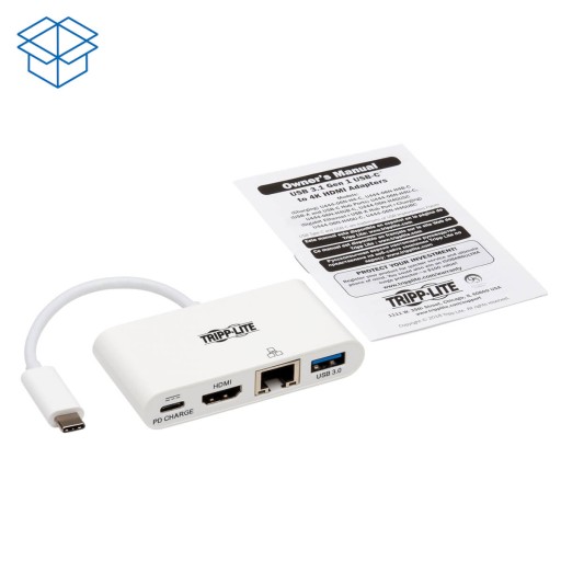 - Nazwa produktu: Eaton Tripp Lite USB-C Multiport Adapter - 4K HDMI, USB-A Port, GbE, 60W PD Charging, HDCP, White
