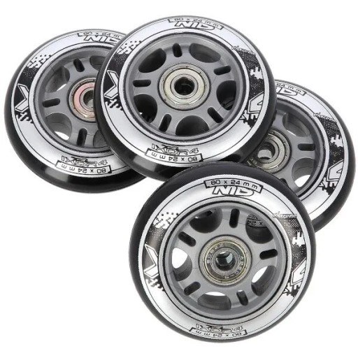 4 колеса для роликовых коньков, черные, 76 мм + 8 подшипников NILS Abec9 SOLID