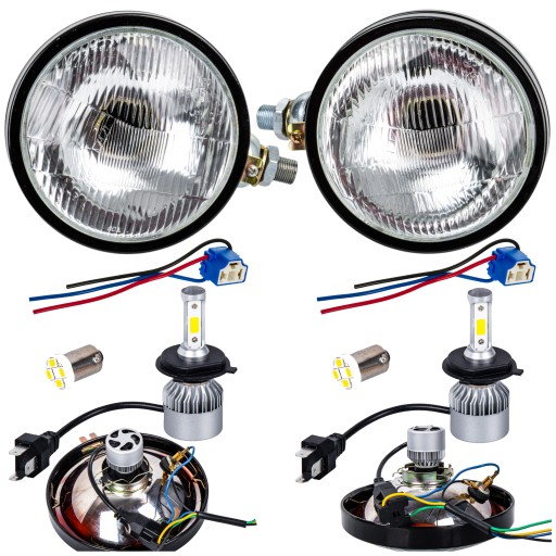 Lampy przednie URSUS C-360 C-330 z żarówkami LED, co znajdziesz w zestawie?